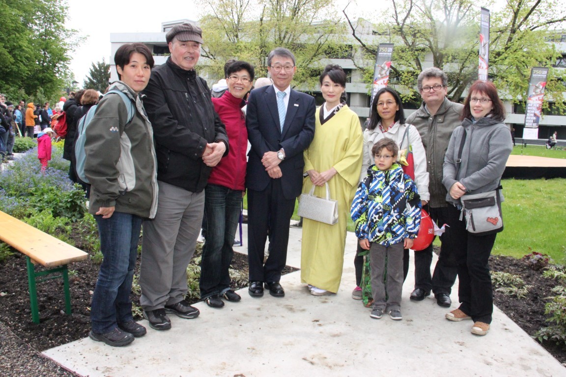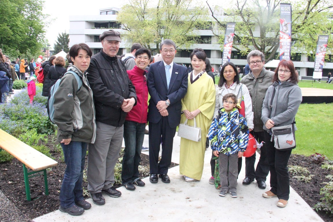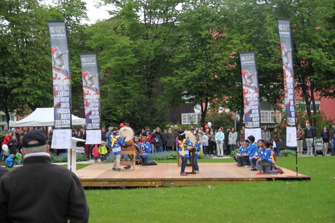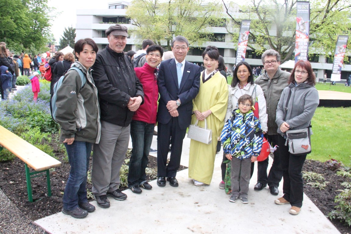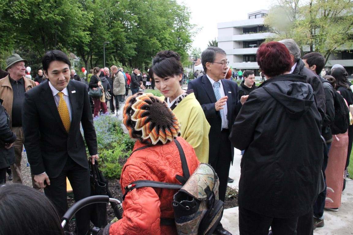 «Yamato»-Exkursion ans Kirschblütenfest nach Winterthur; zwölf Erwachsene und Kinder nehmen trotz Eiseskälte daran teil. Treffen und Fotoshooting mit Botschafter Maeda im Eulachpark.