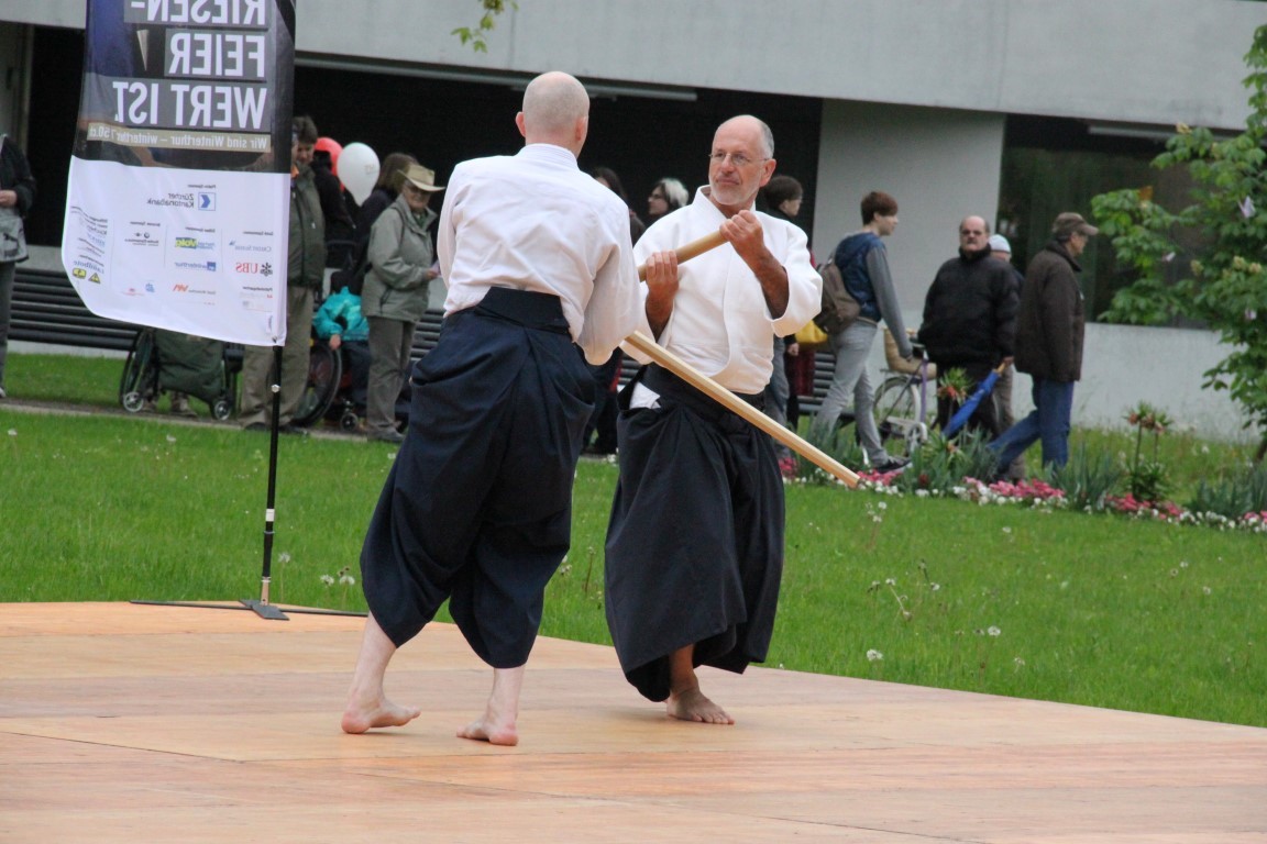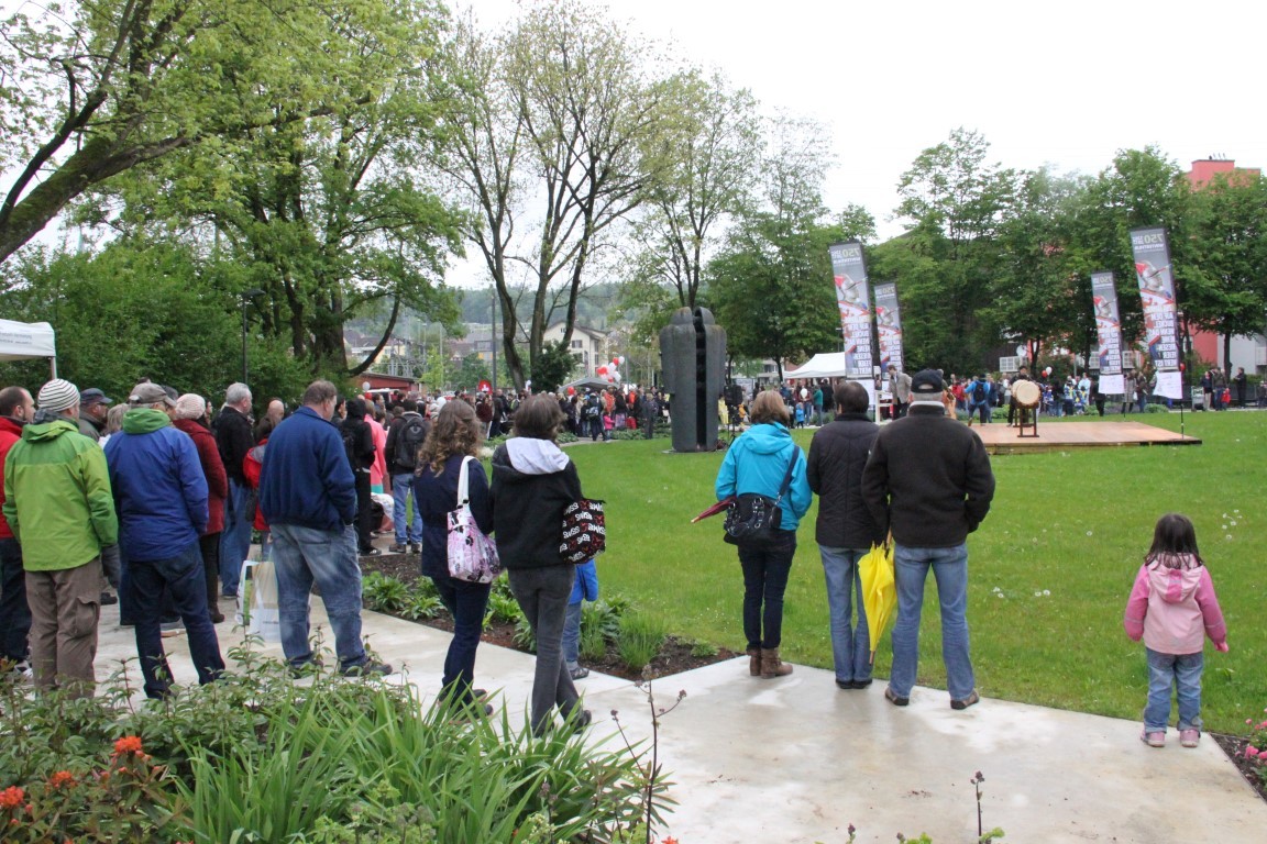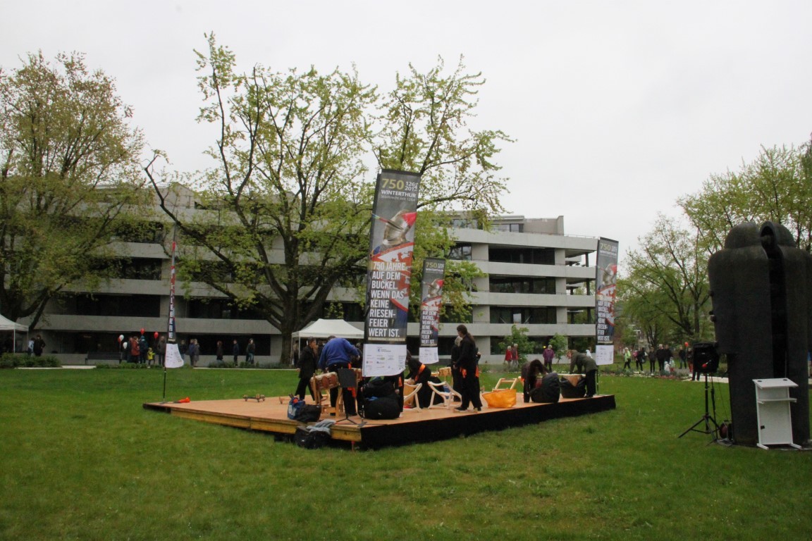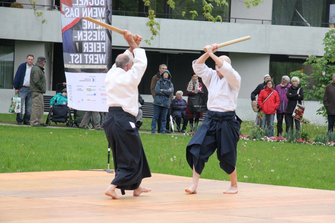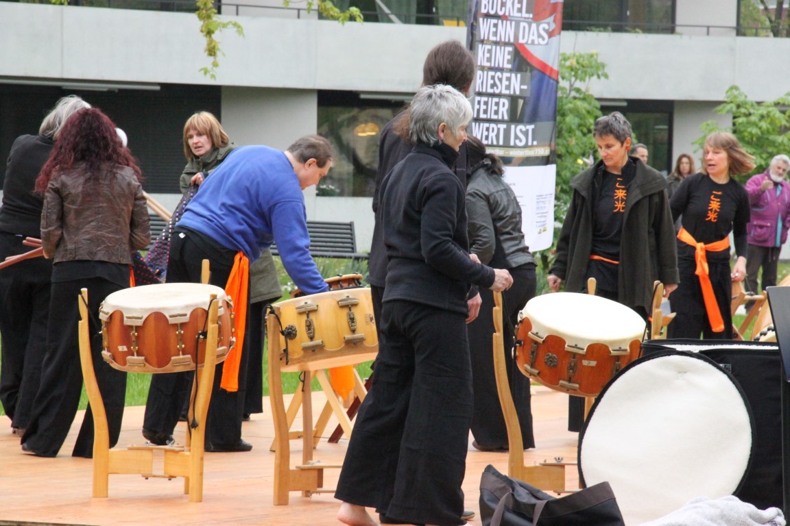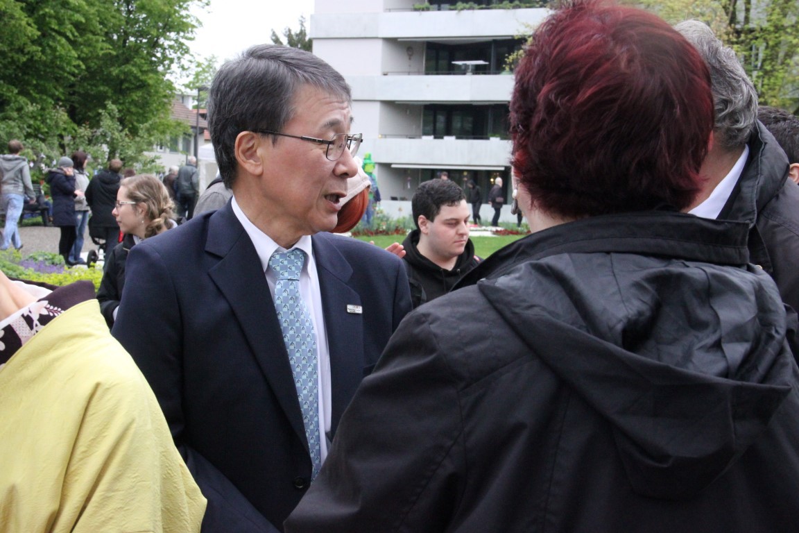 «Yamato»-Exkursion ans Kirschblütenfest nach Winterthur; zwölf Erwachsene und Kinder nehmen trotz Eiseskälte daran teil. Treffen und Fotoshooting mit Botschafter Maeda im Eulachpark.