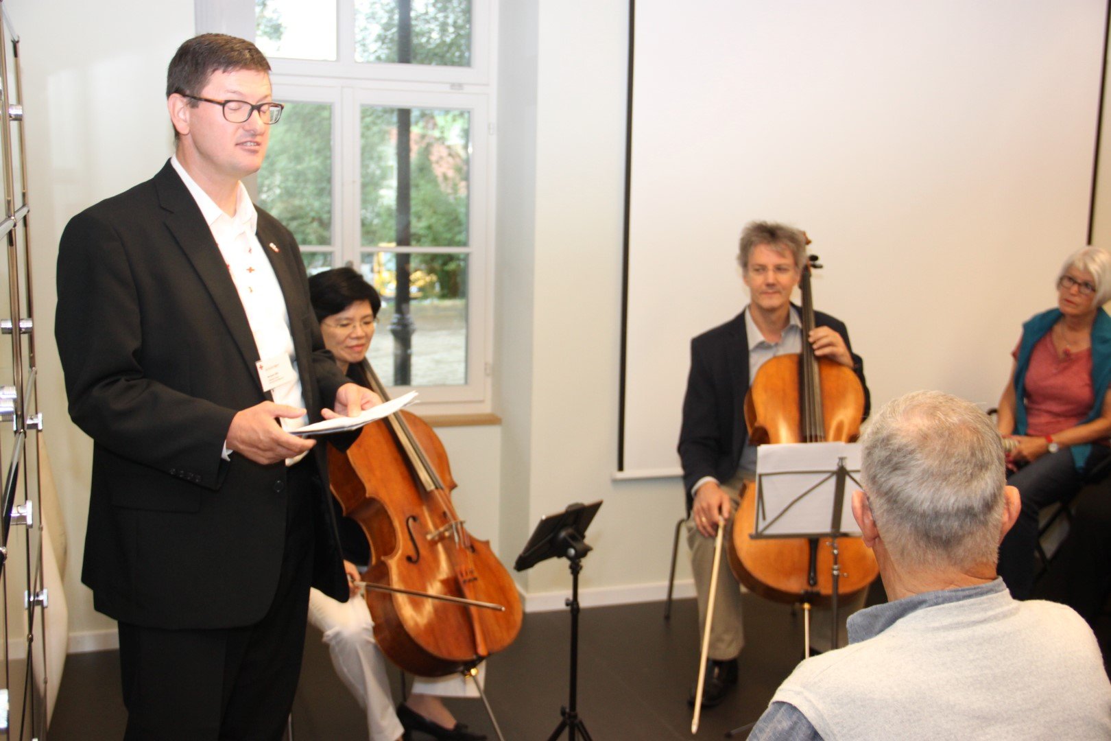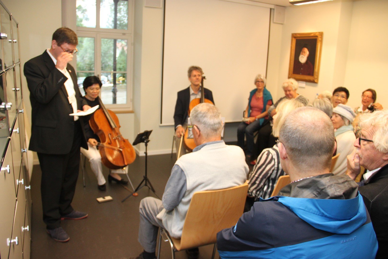 Über 70 Leute finden, trotz Temperatursturz und regnerischem Wetter, den Weg zum Henry-Dunant-Museum in Heiden – darunter nicht weniger als elf Yamatos. Yamoto organisiert auf Einladung des Henry-Dunant-Museum die Musik (es spielen die beiden weltberühmten Violoncellisten Pi-Chin Chien und Fabian Müller) bezaubernd auf) und den japanischen Apéro. Zudem hält unsere Präsidentin, Atsuko Lampart-Fujii, eine vielbeachtete Rede. Im Anschluss daran feiern die Yamatos im benachbarten Grub SG noch gemütlich im malerisch gelegenen «Rossbüchel».