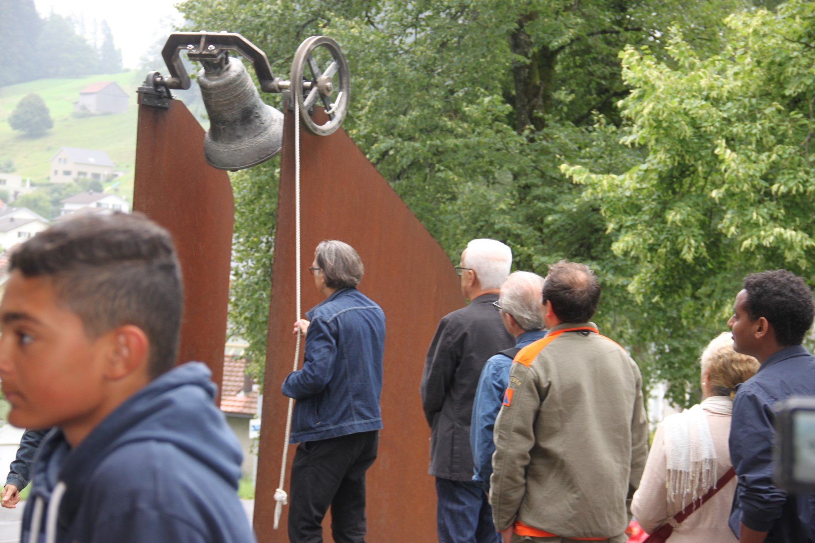 Eine Gruppe von rund 50 Personen, darunter fünf Yamatos, gedenkt an einem prächtigem Sommerabend in Heiden, beim Henry Dunant-Museum, den Opfern des Atombombenangriffs der Amerikaner auf Hiroshima am 6. August 1945. Nachdem die «Peace Bell» von Heiden geläutet und einige kurze Reden gehalten wurden, spazieren die Meisten ins nahe gelegene Kino Rosental, wo der Doku-Film «Als die Sonne vom Himmel fiel» gezeigt wurde. Anschliessend gab es mit der Regisseurin Aya Domenig per Skype eine spannende Diskussion.