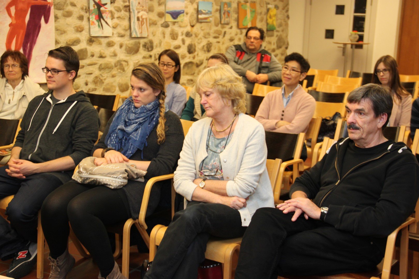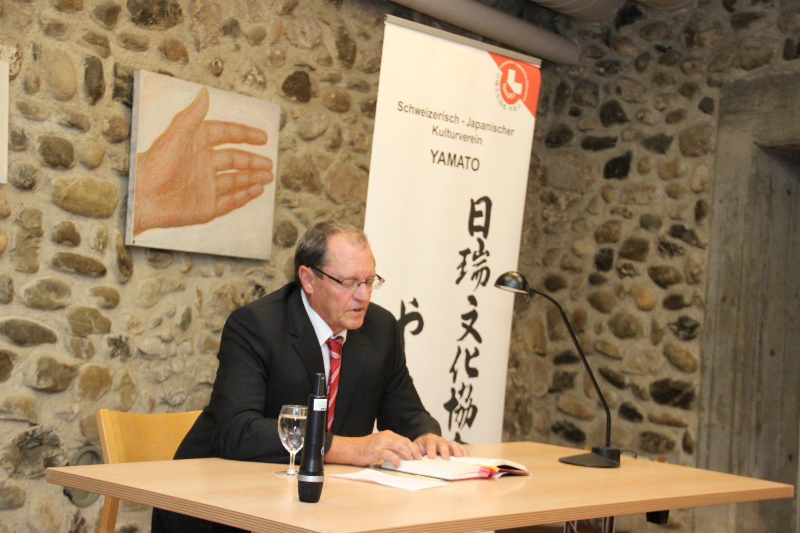 Die Lesung von Thomas Rüst aus seinem Roman «Bens Fukushima» im Kurszentrum Obertor in Winterthur wird von 13 Personen besucht. Rüst liest spannend und im Anschluss daran entsteht eine rege Diskussion über das Buch, das Schreiben an sich, seine Japanerlebnisse etc. Anschliessend gibt es einen leckeren Apéro mit Onigiri, Inarisushi, Edamame und Sake. Aus den geplanten maximalen zwei Stunden werden locker zweieinhalb. Dann müssen wir gehen - der Securitas zuliebe... Es war ein wunderschöner Abend. Wer nicht kam, hat zweifelsohne etwas verpasst.