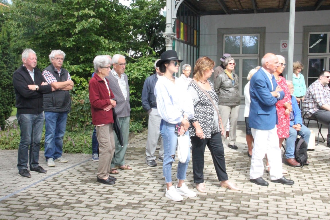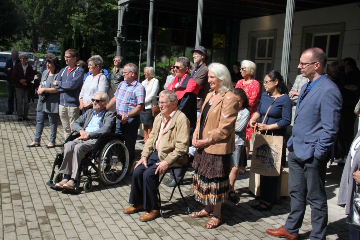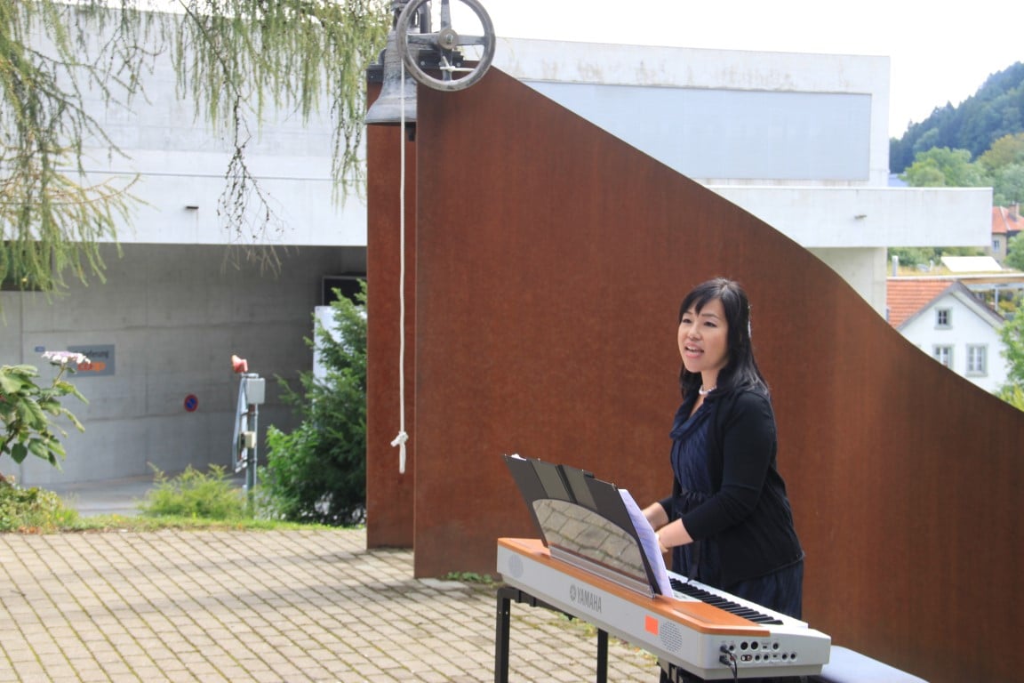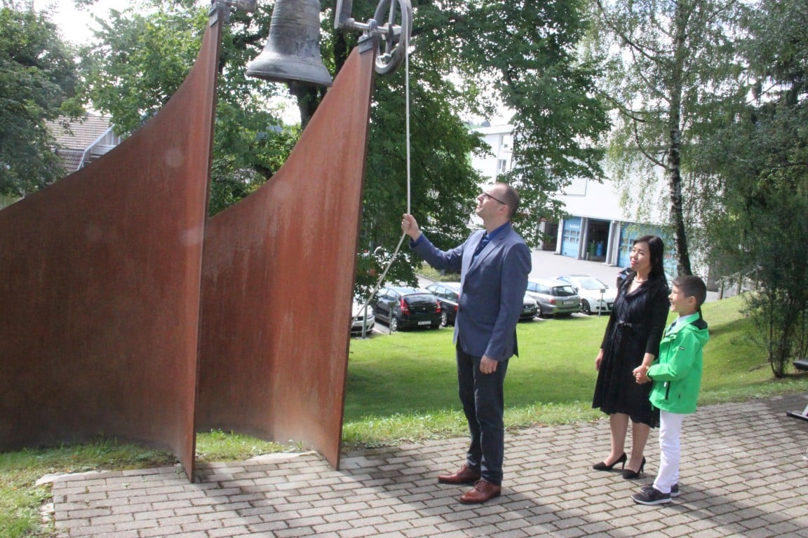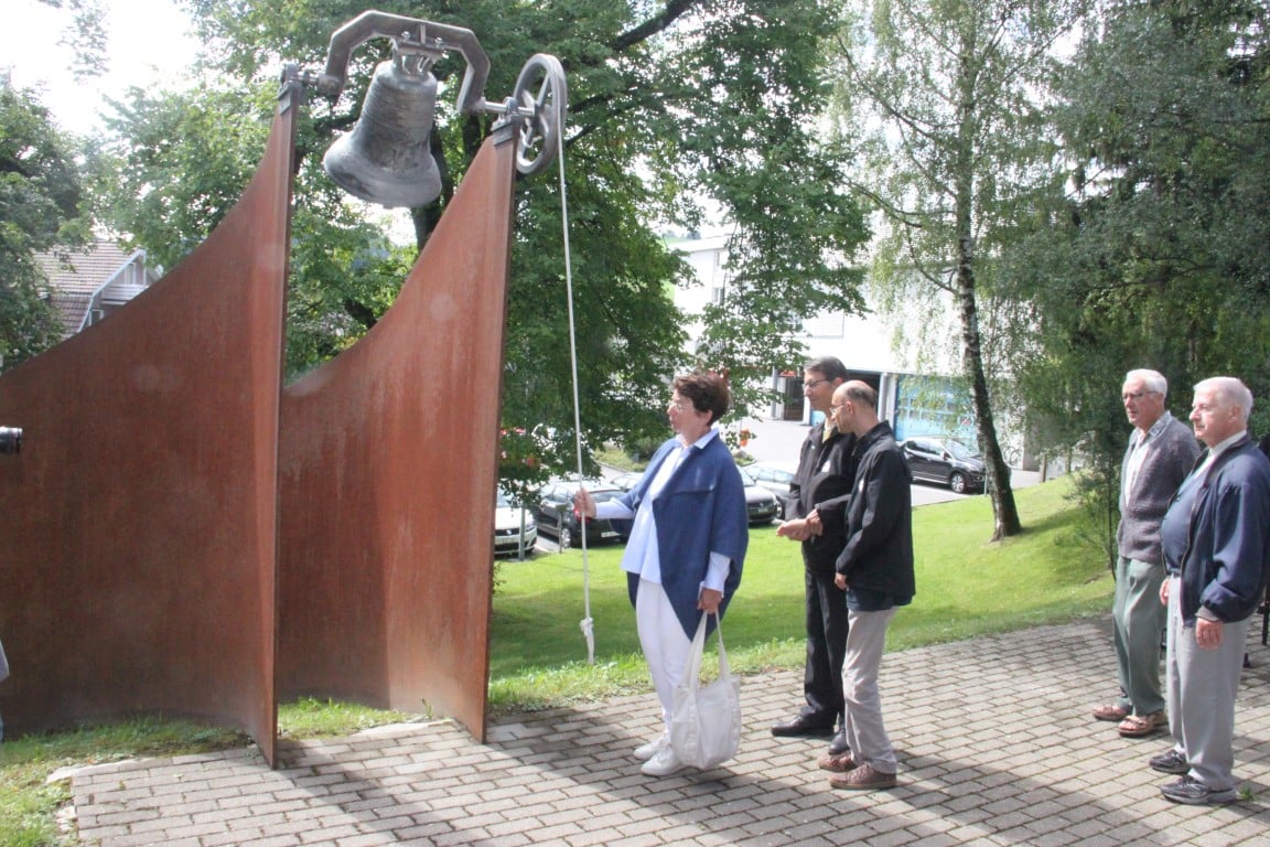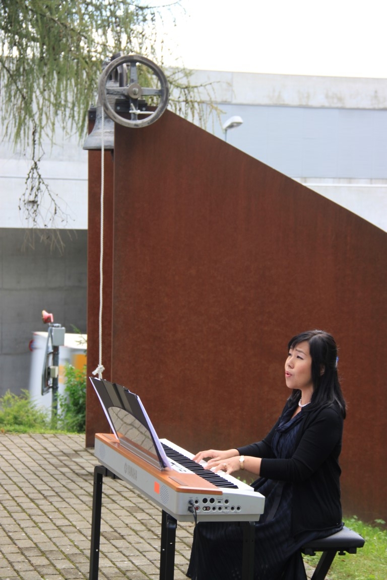 Rund 80 Personen wohnen dem 72. Gedenktag anlässlich des Atombombenangriffs der USA auf Nagasaki in Heiden bei und läuten die «Peace Bell» beim Henry Dunant- Museum. Auch sieben Yamatos sind an diesem würdevollen Anlass, der wunderschön von der Sopranistin Hiroko Haag mit japanischen Liedern umrahmt wird, mit dabei: Atsuko, Alex Angehrn, Temucin, Hayami, Jandira, Georg und Christof. Nach dem Apéro begeben wir uns zu Fuss ins Hotel «Linde», wo wir gemeinsam ein Mittagessen einnehmen und uns über die verschiedensten japanischen Themen angeregt unterhalten.