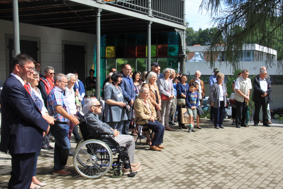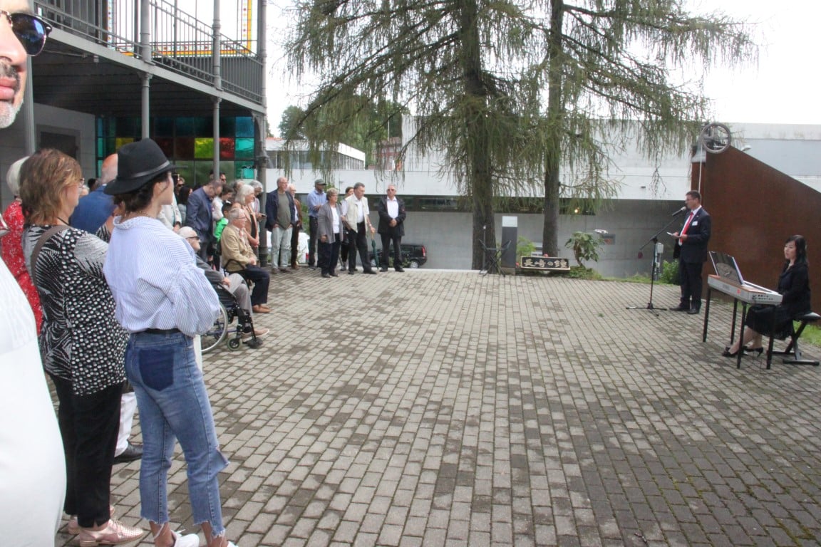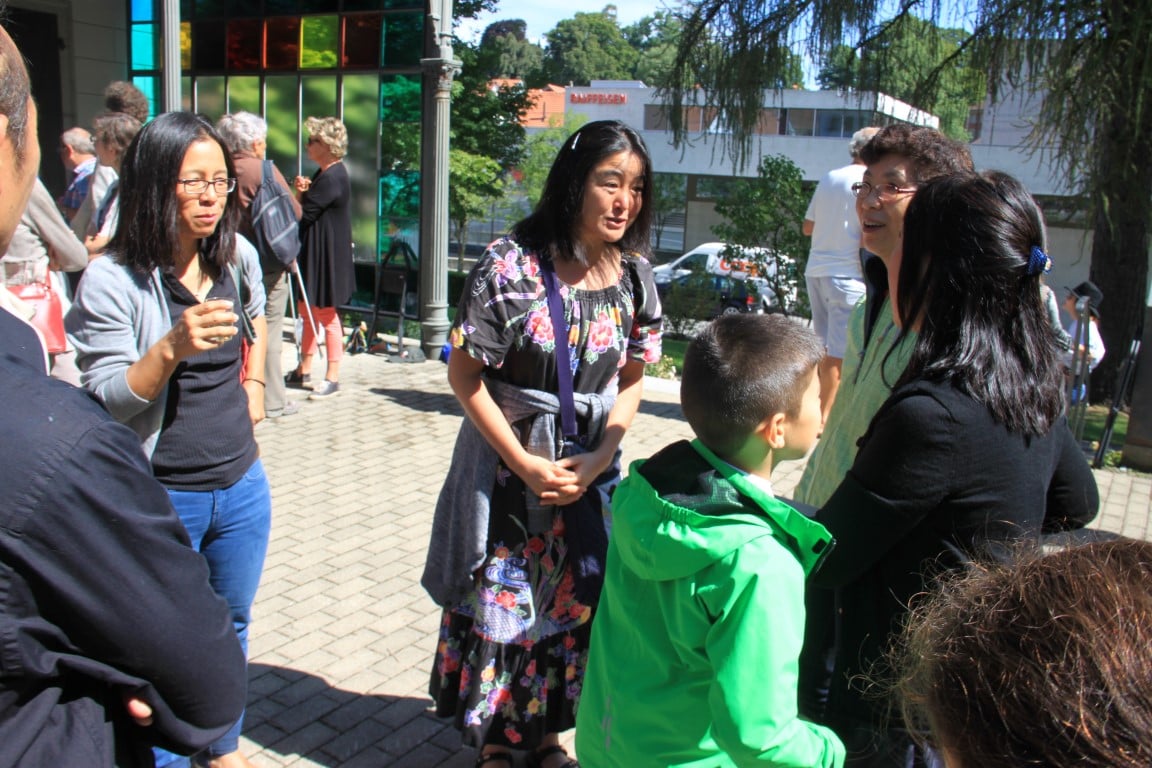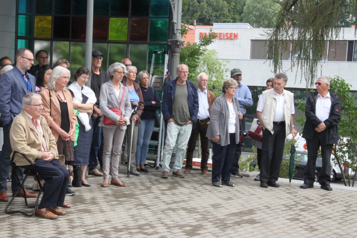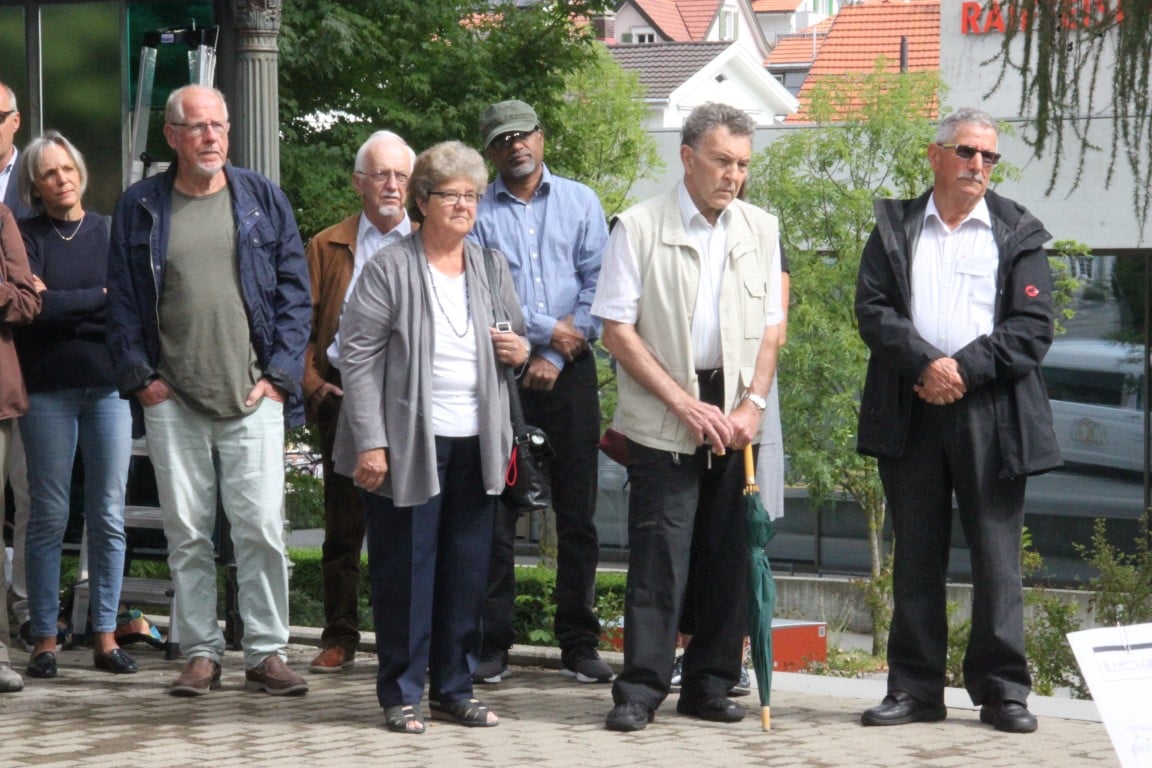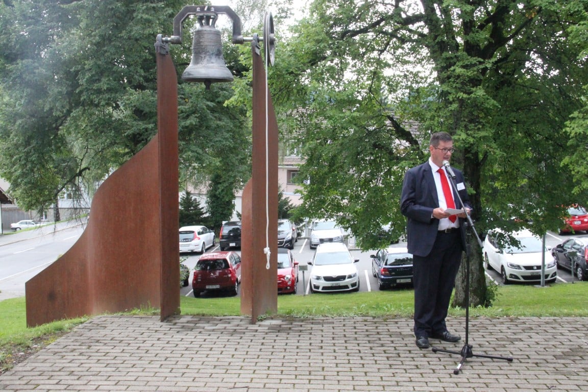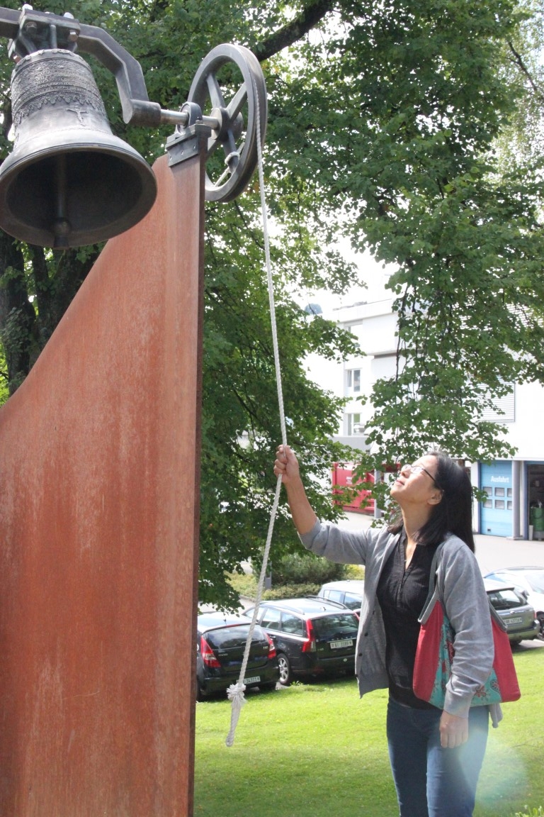 Rund 80 Personen wohnen dem 72. Gedenktag anlässlich des Atombombenangriffs der USA auf Nagasaki in Heiden bei und läuten die «Peace Bell» beim Henry Dunant- Museum. Auch sieben Yamatos sind an diesem würdevollen Anlass, der wunderschön von der Sopranistin Hiroko Haag mit japanischen Liedern umrahmt wird, mit dabei: Atsuko, Alex Angehrn, Temucin, Hayami, Jandira, Georg und Christof. Nach dem Apéro begeben wir uns zu Fuss ins Hotel «Linde», wo wir gemeinsam ein Mittagessen einnehmen und uns über die verschiedensten japanischen Themen angeregt unterhalten.