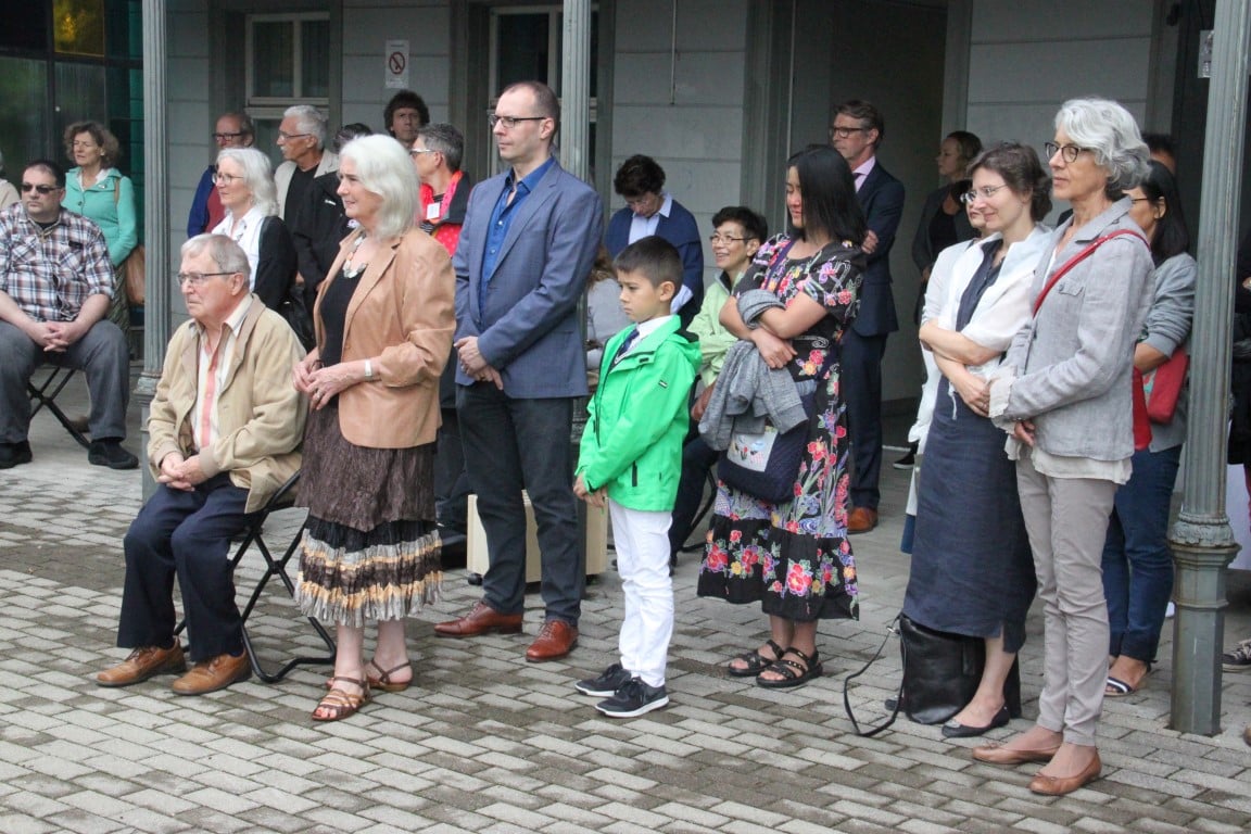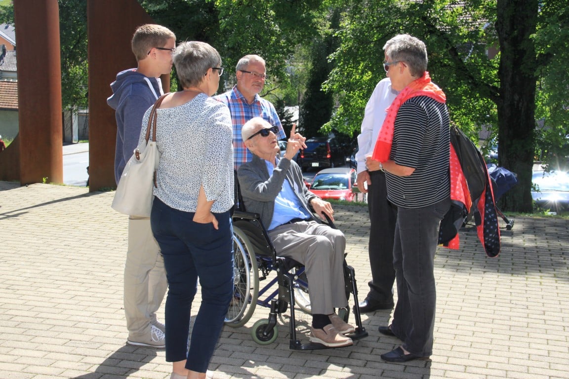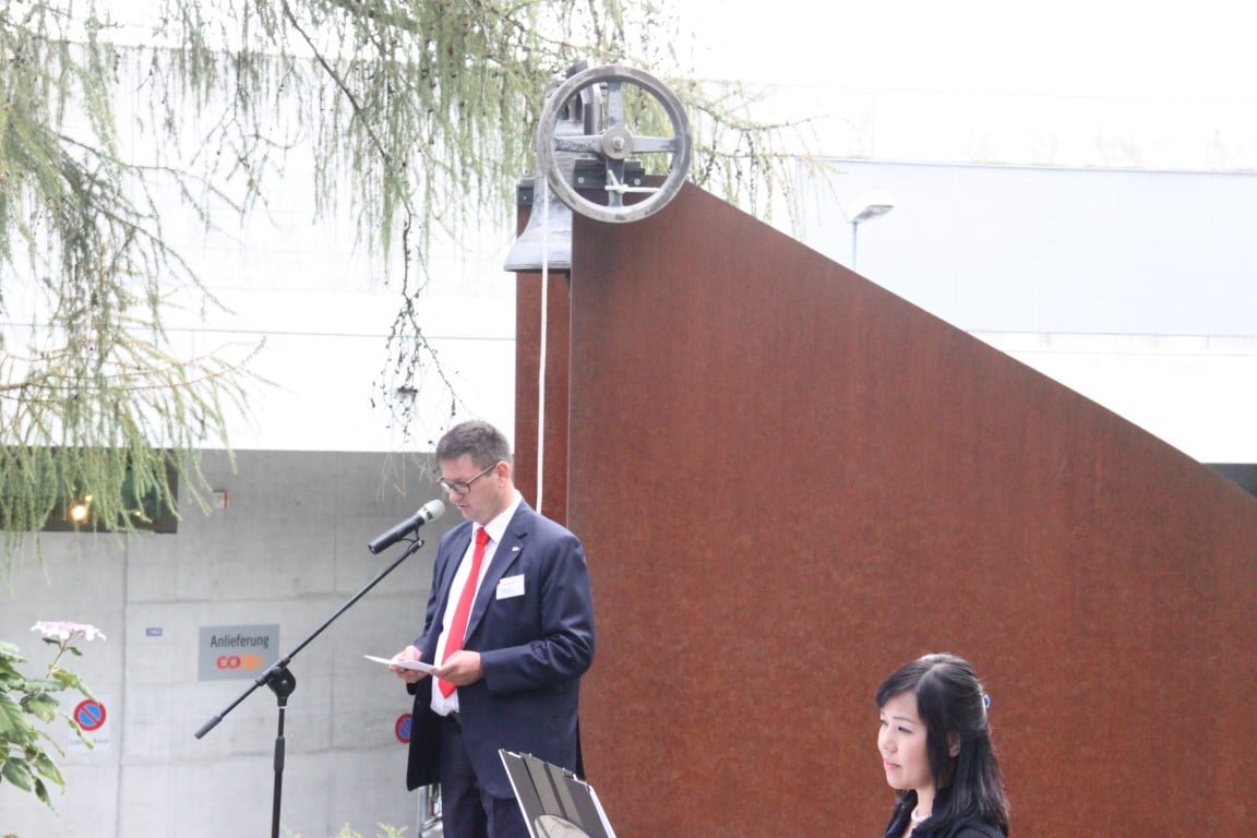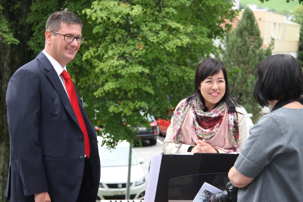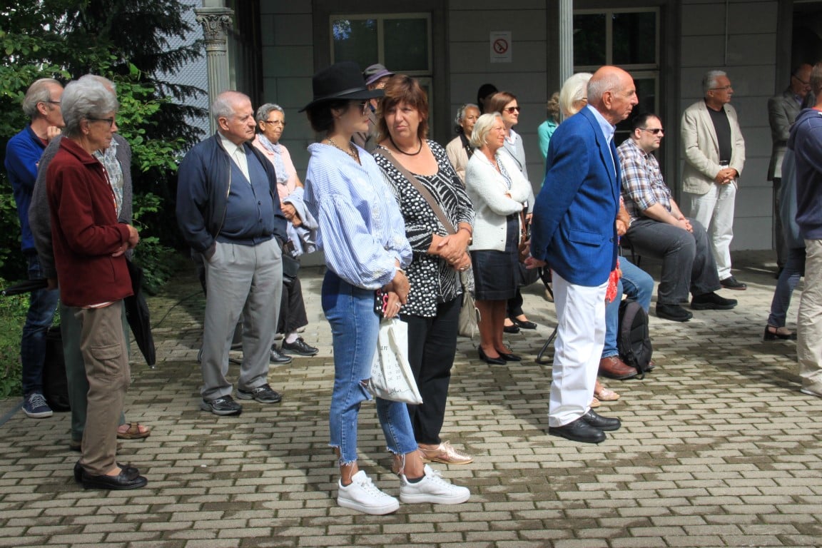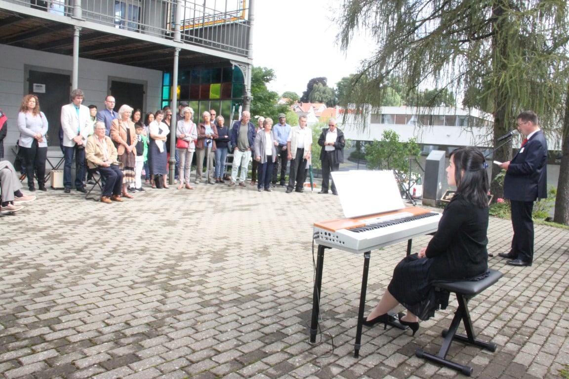 Rund 80 Personen wohnen dem 72. Gedenktag anlässlich des Atombombenangriffs der USA auf Nagasaki in Heiden bei und läuten die «Peace Bell» beim Henry Dunant- Museum. Auch sieben Yamatos sind an diesem würdevollen Anlass, der wunderschön von der Sopranistin Hiroko Haag mit japanischen Liedern umrahmt wird, mit dabei: Atsuko, Alex Angehrn, Temucin, Hayami, Jandira, Georg und Christof. Nach dem Apéro begeben wir uns zu Fuss ins Hotel «Linde», wo wir gemeinsam ein Mittagessen einnehmen und uns über die verschiedensten japanischen Themen angeregt unterhalten.