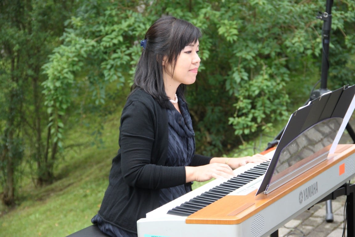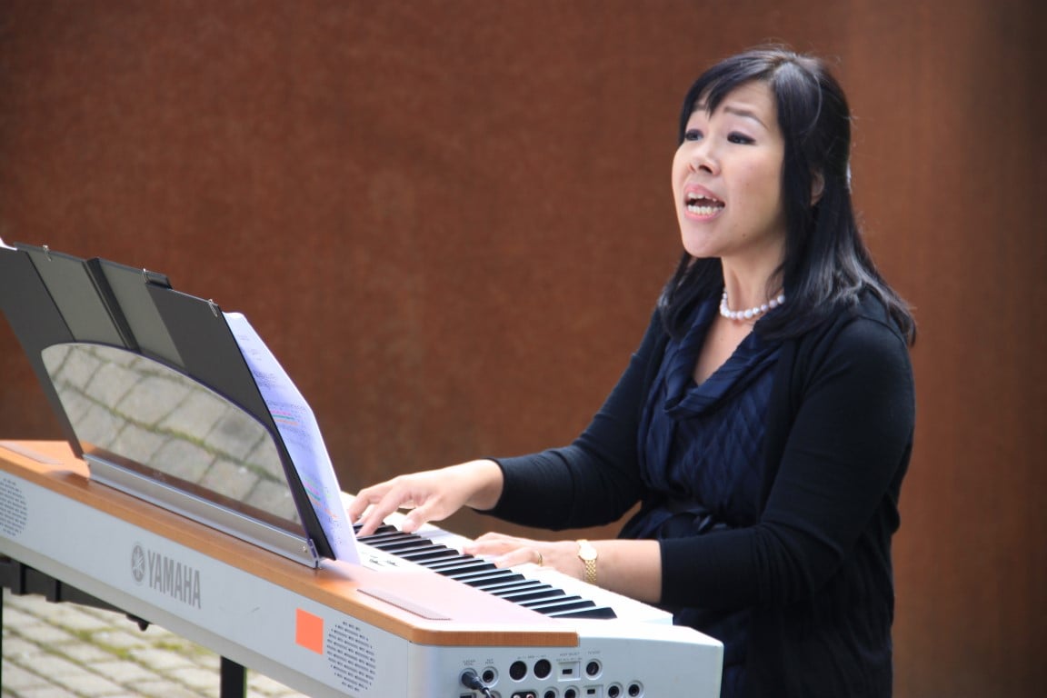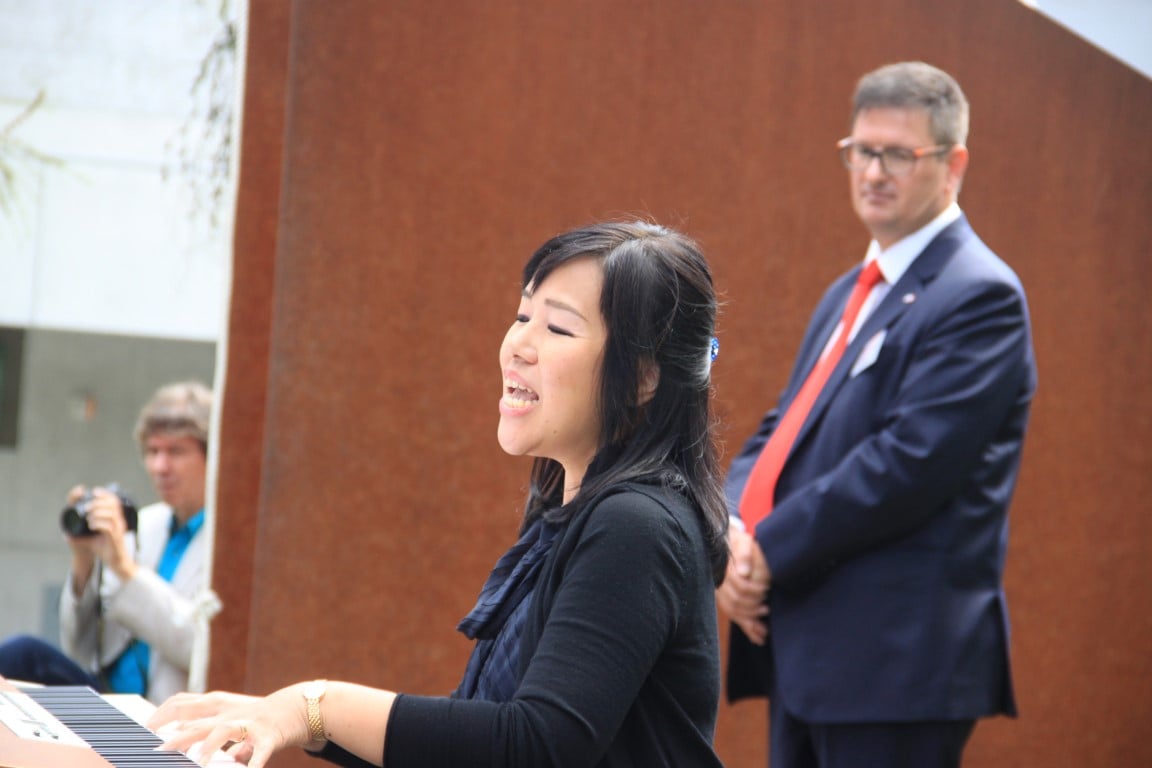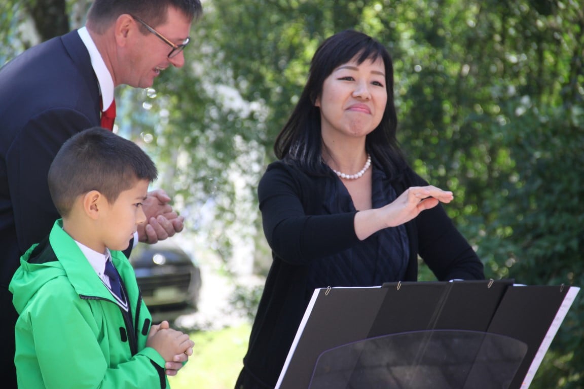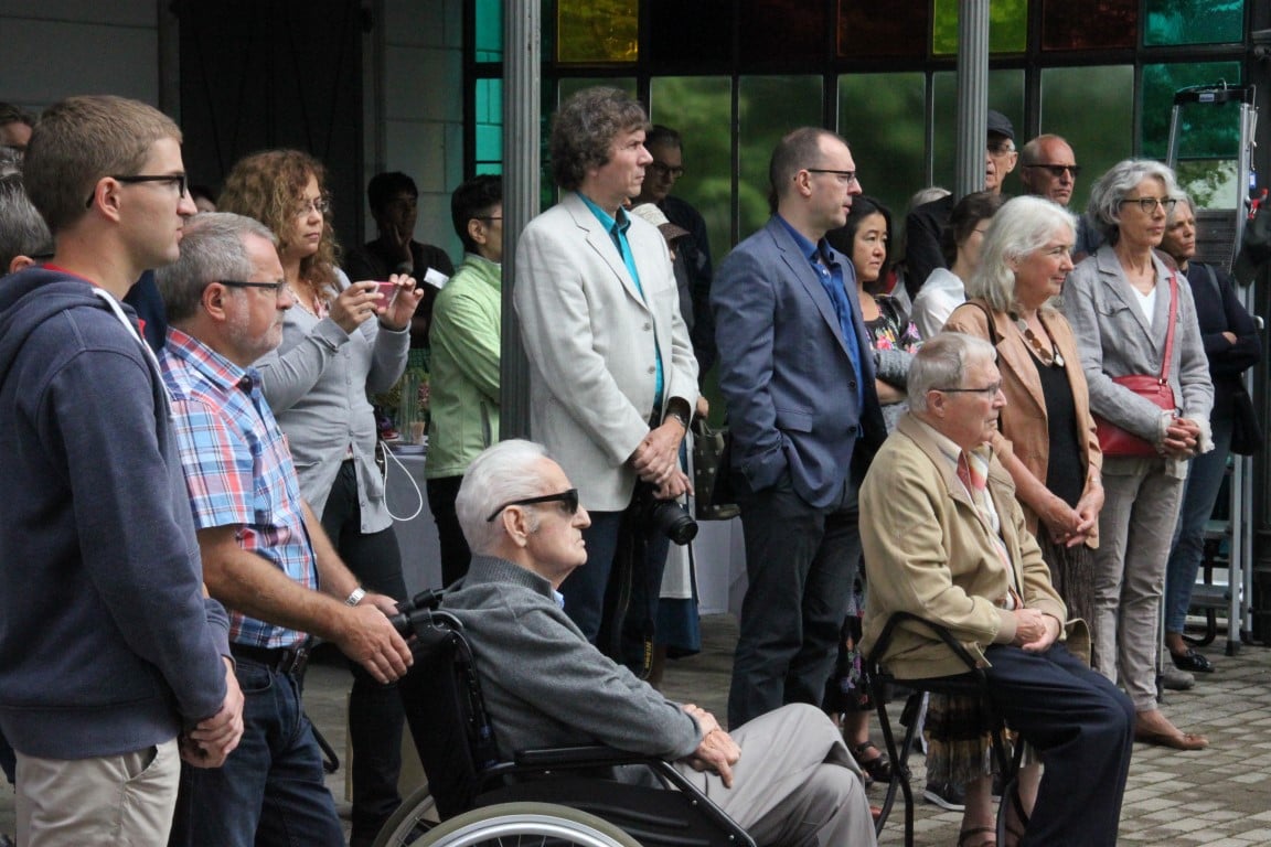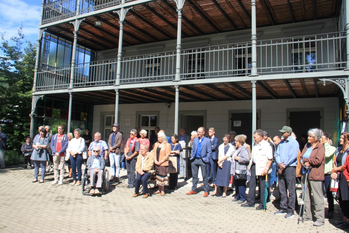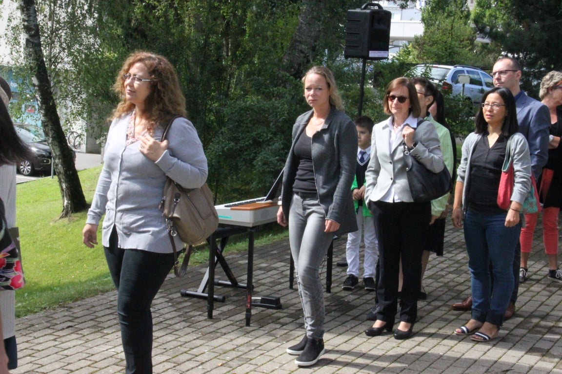 Rund 80 Personen wohnen dem 72. Gedenktag anlässlich des Atombombenangriffs der USA auf Nagasaki in Heiden bei und läuten die «Peace Bell» beim Henry Dunant- Museum. Auch sieben Yamatos sind an diesem würdevollen Anlass, der wunderschön von der Sopranistin Hiroko Haag mit japanischen Liedern umrahmt wird, mit dabei: Atsuko, Alex Angehrn, Temucin, Hayami, Jandira, Georg und Christof. Nach dem Apéro begeben wir uns zu Fuss ins Hotel «Linde», wo wir gemeinsam ein Mittagessen einnehmen und uns über die verschiedensten japanischen Themen angeregt unterhalten.