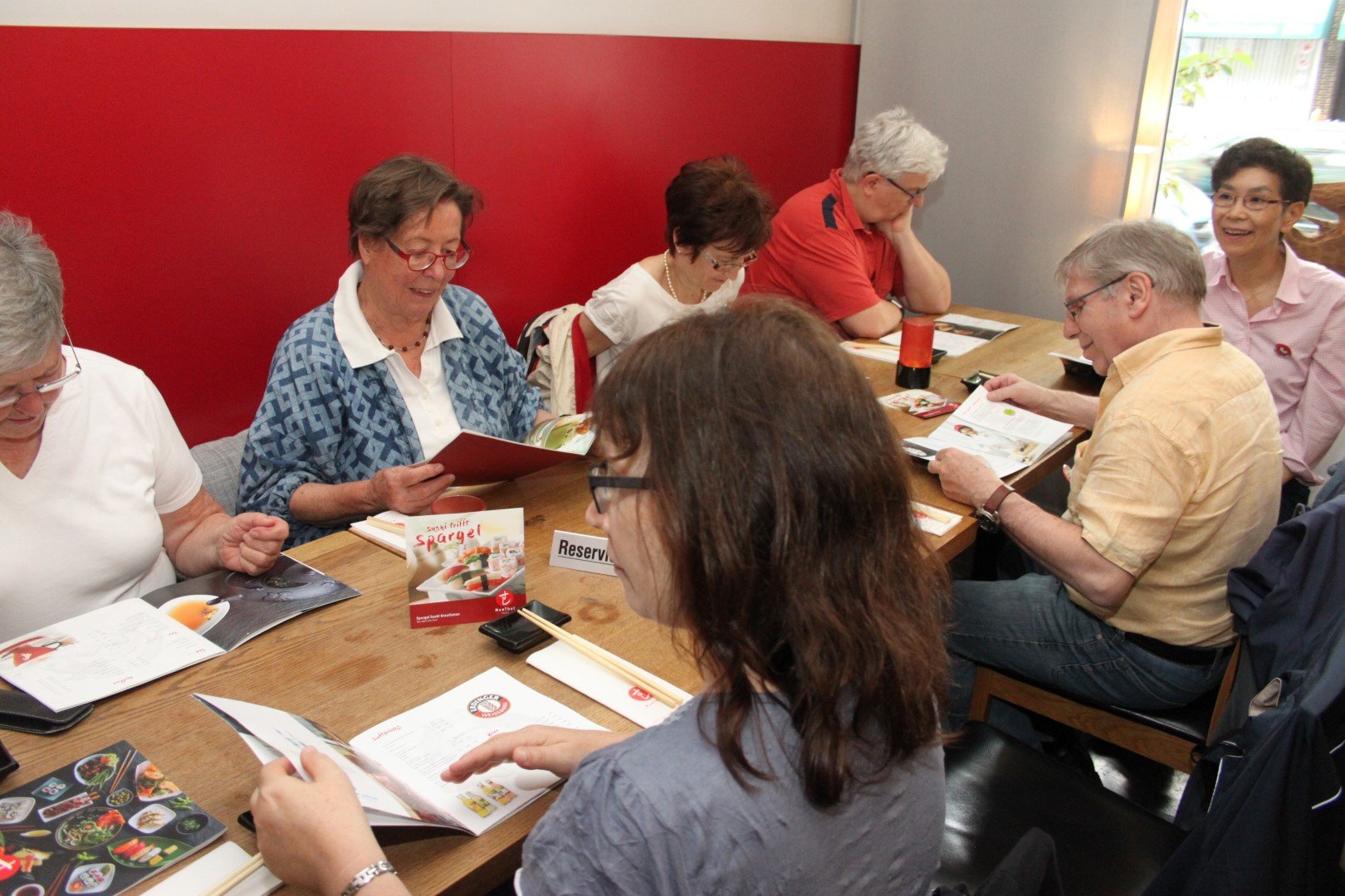 Den Auftakt machten am 24. Mai eine von Yamato bezahlte «Happy Hour» in der Hotel-Lobby zur Begrüssung; danach ging es per Tram in den Stadteil Bilk, wo wir bei einem Sushi-Essen gemeinsam einen gemütlichen Abend verbrachten.