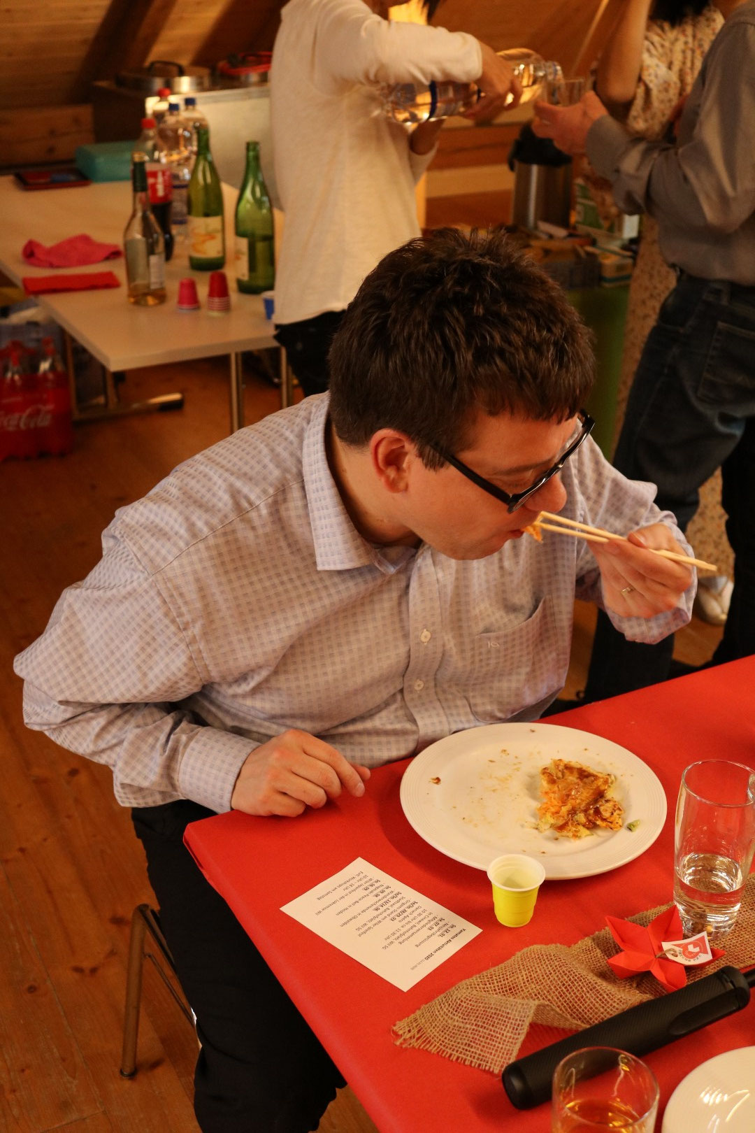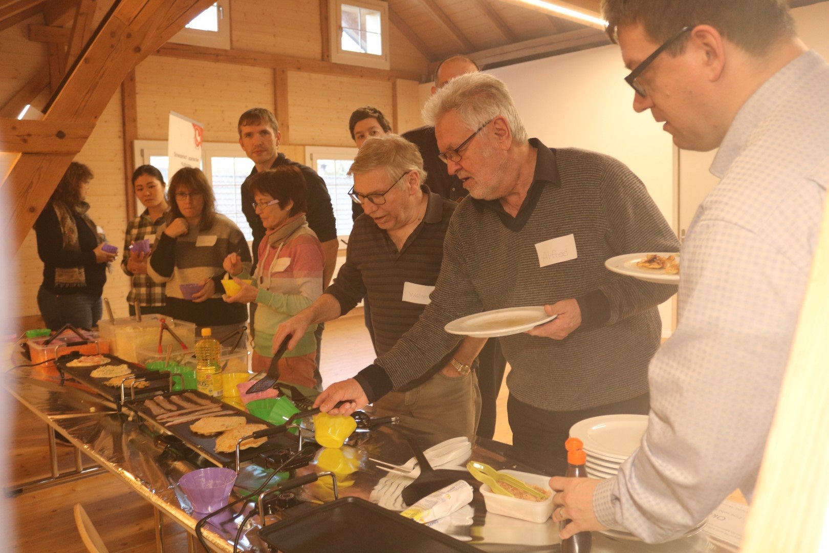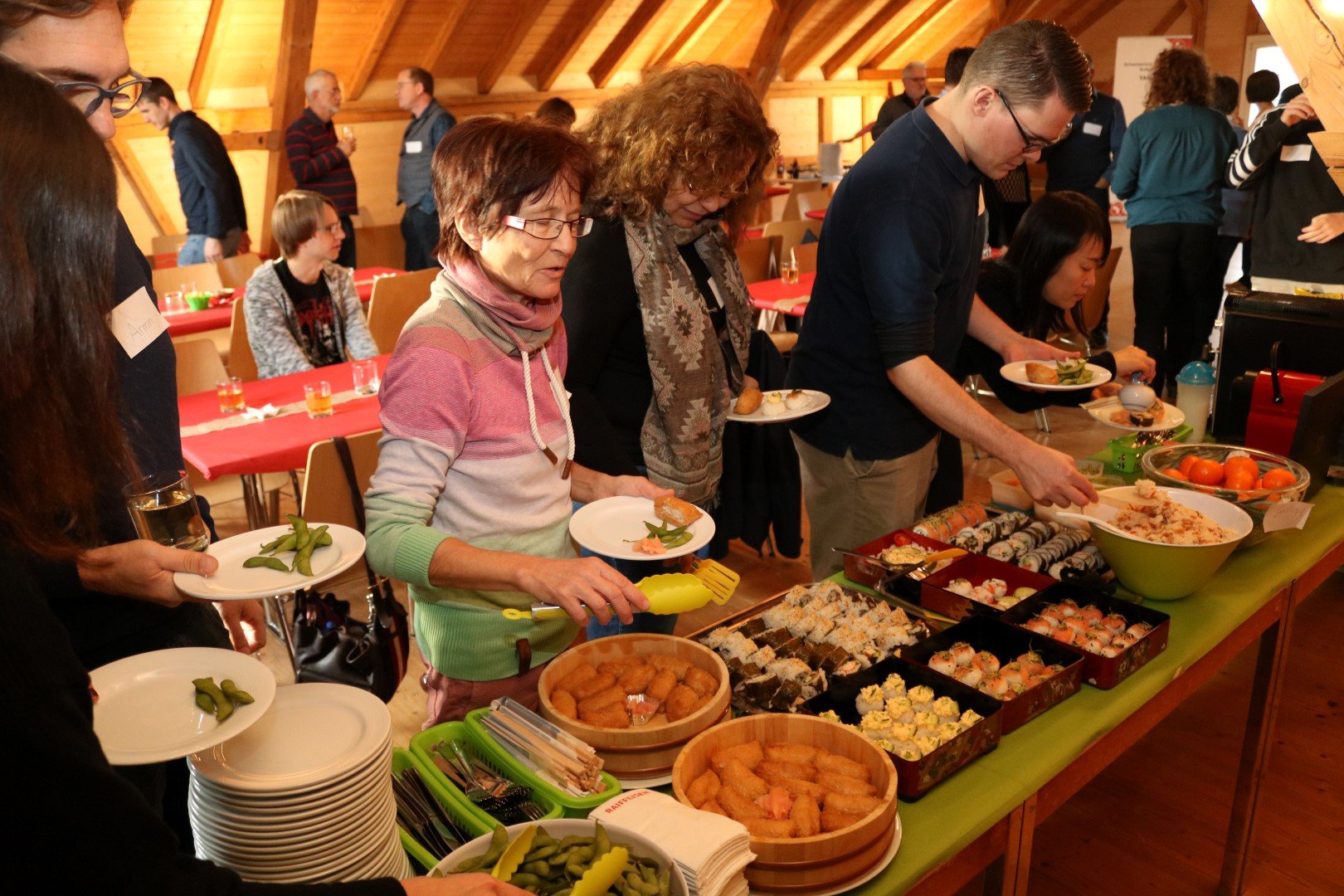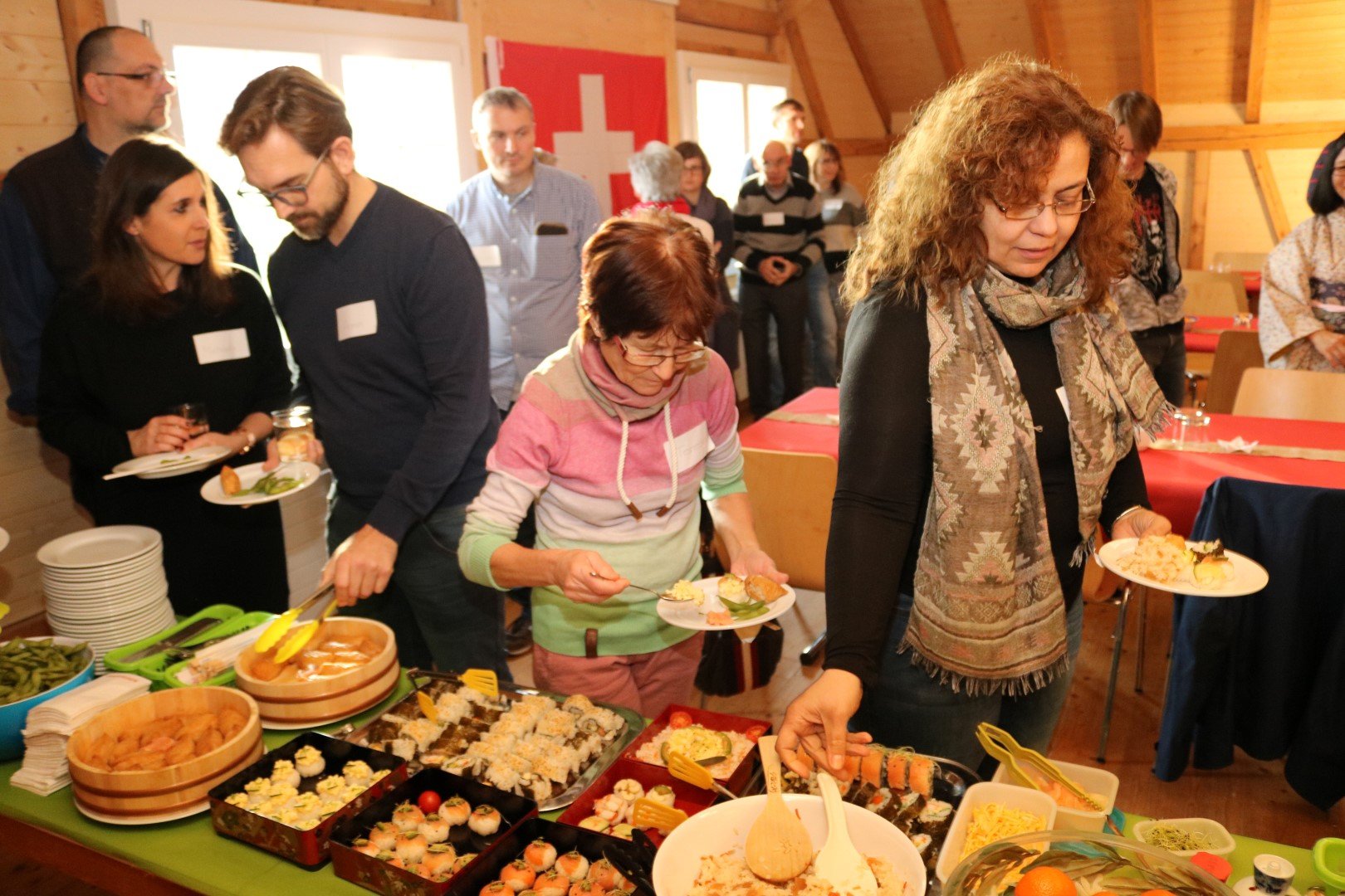 An unserer 6. Neujahrsbegrüssung, die auch dieses Jahr in der Scheune der Dorfkorporation Bronschhofen stattfindet, durften wir 38 Besucherinnen und Besucher, Vereinsmitglieder wie auch Gäste, begrüssen. Unter unseren geschätzten Gästen befinden sich auch der Wiler Stadtparlamentspräsident Roland Bosshart (CVP) und seine Ehefrau Andrea. Nach einer kurzen Ansprache von Yamato-Präsidentin Atsuko Lampart-Fujii, lassen es sich alle bei Sushi und Okonomiyaki gut gehen. Der Tsugaru Shamisen-Virtuose Andreas Tellenbach, Winterthur, gibt ein kleines Konzert zum Besten. Und Anita Keller stellt das attraktive Programm des Obwaldener Wanderwochenendes im Juni 2020 vor. Der Nachmittag vergeht bei vielen spannenden Gesprächen wie im Fluge. Der Start ins Vereinsjahr 2020 ist mehr als nur gelungen!