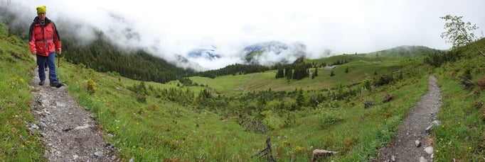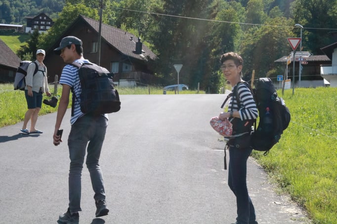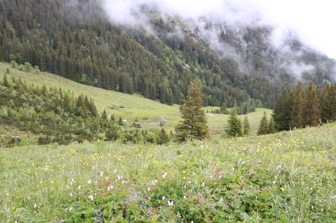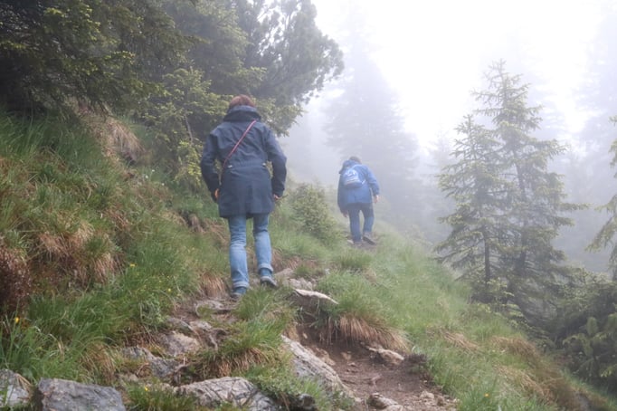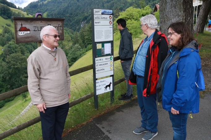 Am nächsten Tag ging es weiter auf die Fluonalp und von dort auf den Hausberg der Region, den Giswiler Stock. Das Wetter hielt, so dass die Bergwanderung sehr angenehm war. Wunderbar waren die vielen Blumenfelder (blauer Enzian!). Sie entschädigten einen dafür, dass die Fernsicht auf dem Gipfelkreuz praktisch null war. Nach einem Mittagessen in der Alpkäserei Fluonalp (Bratkäse) ging es per Taxi nach Sachseln, wo wir Pater Josef trafen, den Pfarrer von Flüeli-Ranft. Er gewährte uns eine ausgedehnte Führung (Grab, Geburtshaus, Wohnhaus, Kapelle, Zelle von Niklaus von der Flüe). Am frühen Abend, nach einem letzten Kaffee in Sachseln, brachen alle wieder mit dem guten Gefühl nach Hause auf, zwei abwechslungsreiche Tage im Kreise vieler netten Menschen verbracht zu haben.
