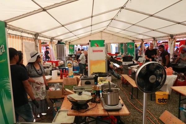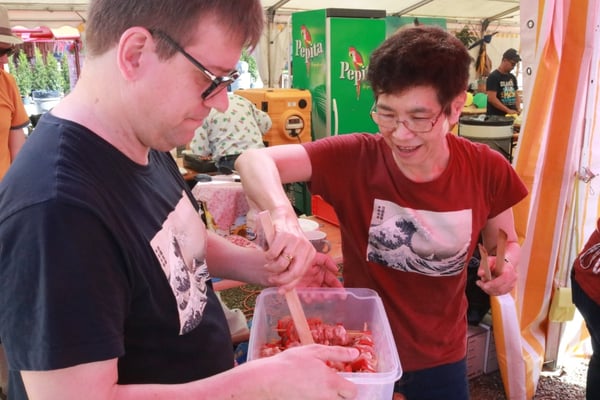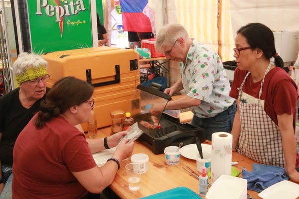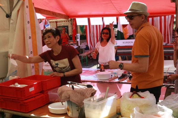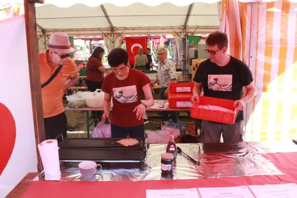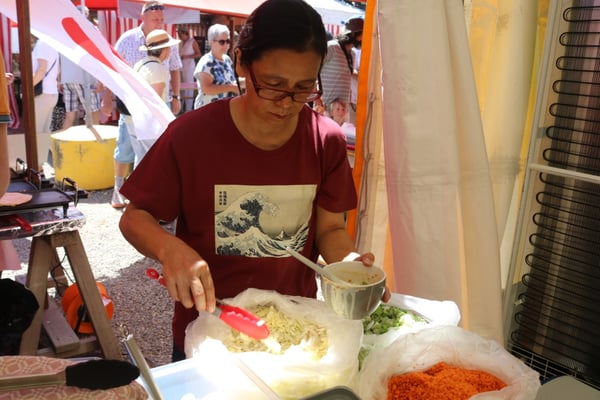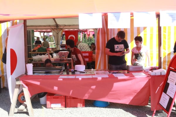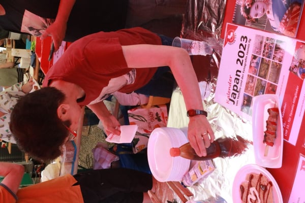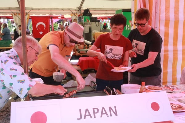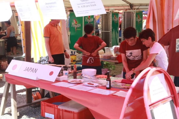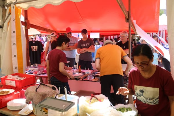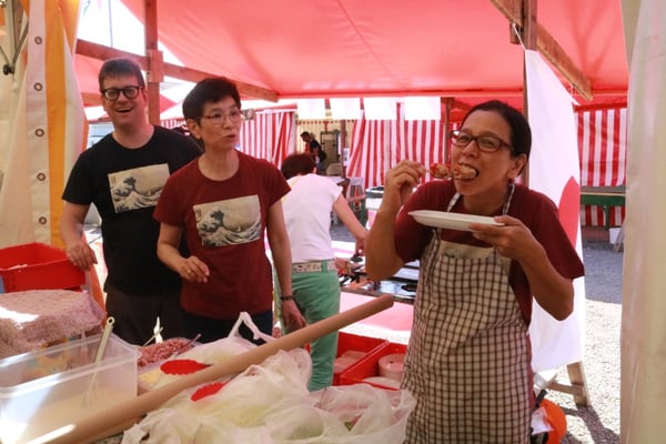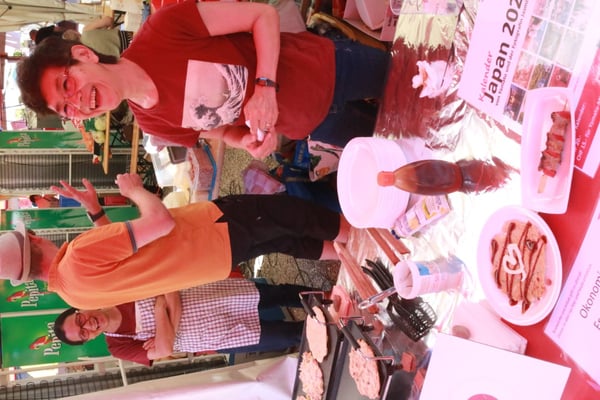 Dieses Jahr nahmen wir für einmal nicht am «Chrüzlinger Fescht», sondern - aufgrund des 75-jährigen Jubiläums der Stadt – am Stadtfest Kreuzlingen teil. Das Fest dauerte drei Tage, wobei Yamato nur am abschliessenden Sonntag mit seinem Okonomiyaki/Yakitori-Stand daran teilnahm. Die Spiessli waren schnell ausverkauft und auch in Sachen Okonomiyaki stellte sich heraus, dass wir nur ein bisschen zu viel an Teig und Gemüse vorbereitet hatten. Beim Vorbereiten und am Tag selbst halfen zehn Yamatos mit.