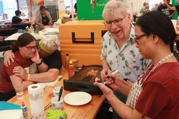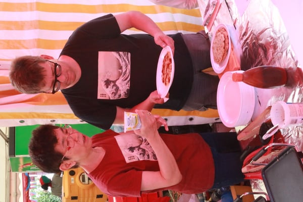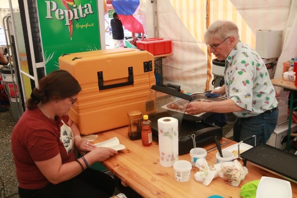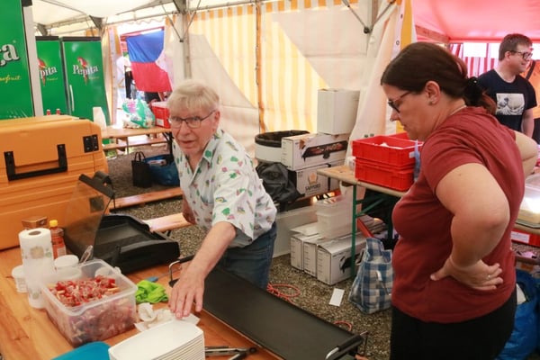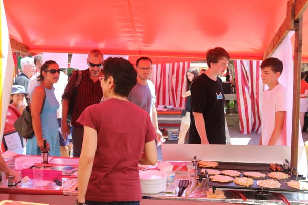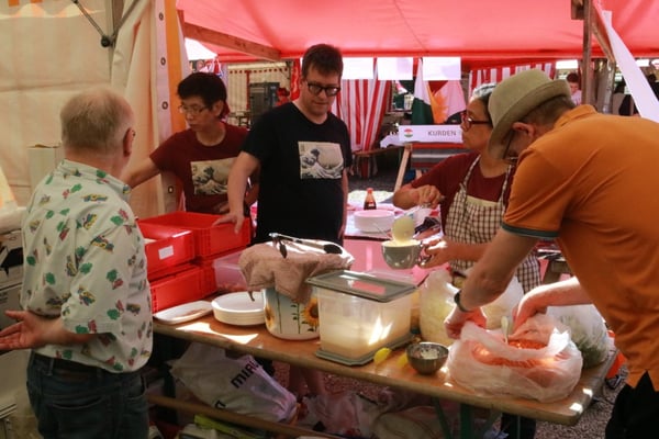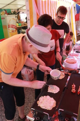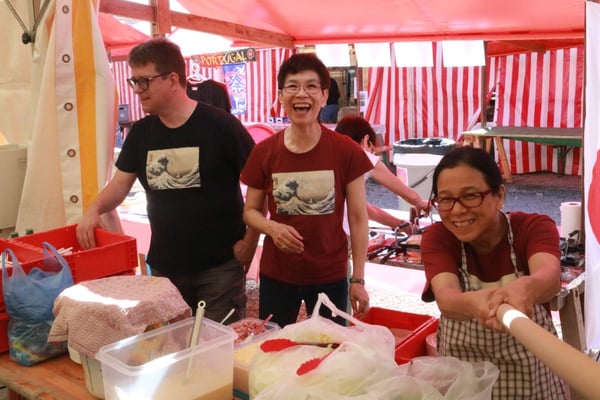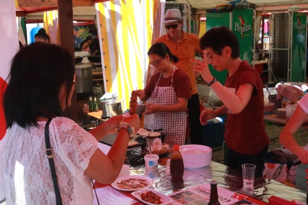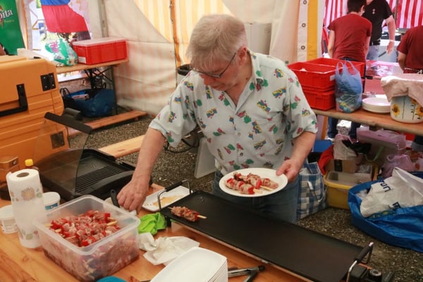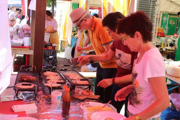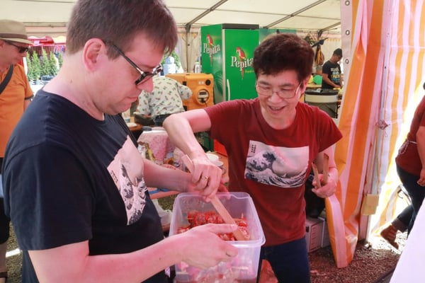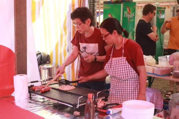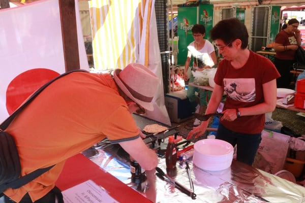 Dieses Jahr nahmen wir für einmal nicht am «Chrüzlinger Fescht», sondern - aufgrund des 75-jährigen Jubiläums der Stadt – am Stadtfest Kreuzlingen teil. Das Fest dauerte drei Tage, wobei Yamato nur am abschliessenden Sonntag mit seinem Okonomiyaki/Yakitori-Stand daran teilnahm. Die Spiessli waren schnell ausverkauft und auch in Sachen Okonomiyaki stellte sich heraus, dass wir nur ein bisschen zu viel an Teig und Gemüse vorbereitet hatten. Beim Vorbereiten und am Tag selbst halfen zehn Yamatos mit.