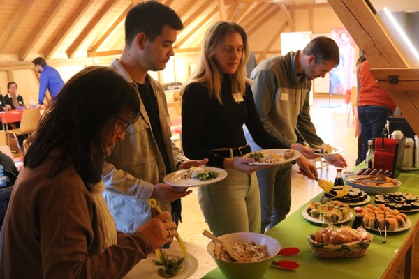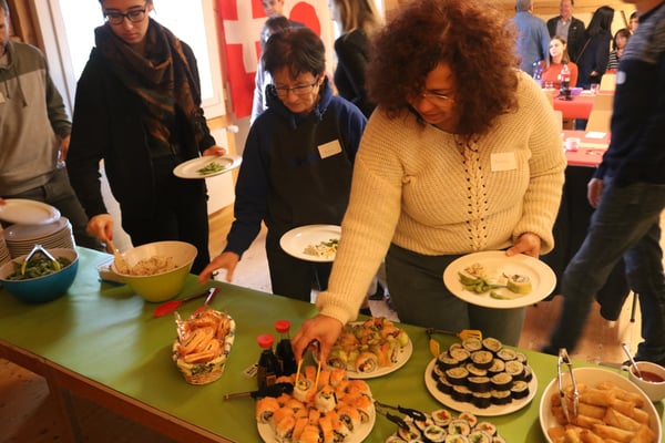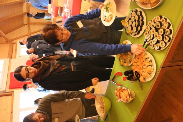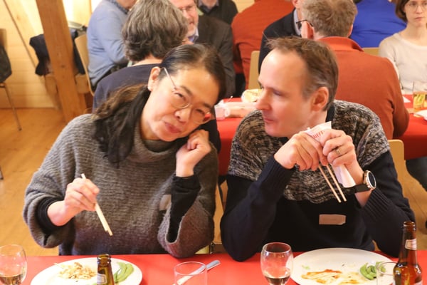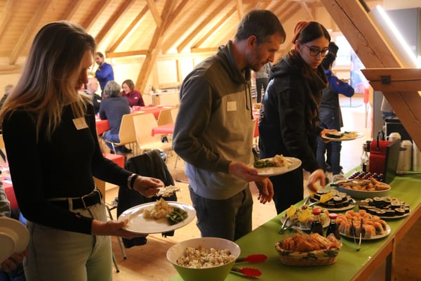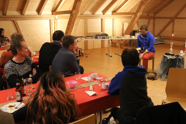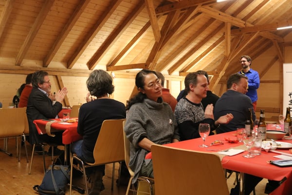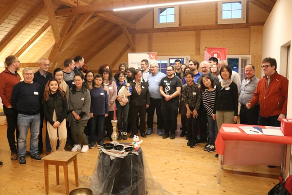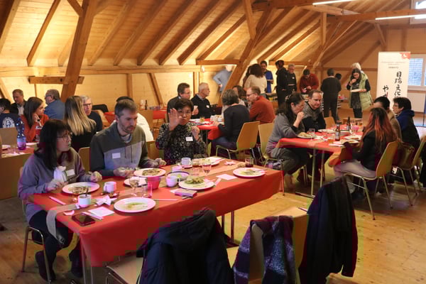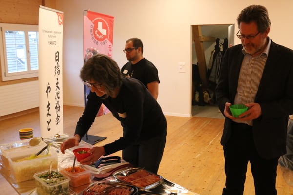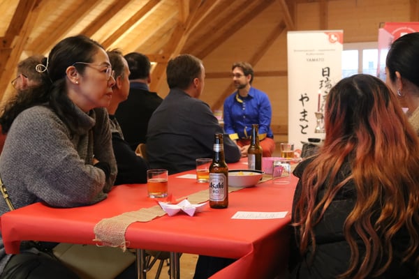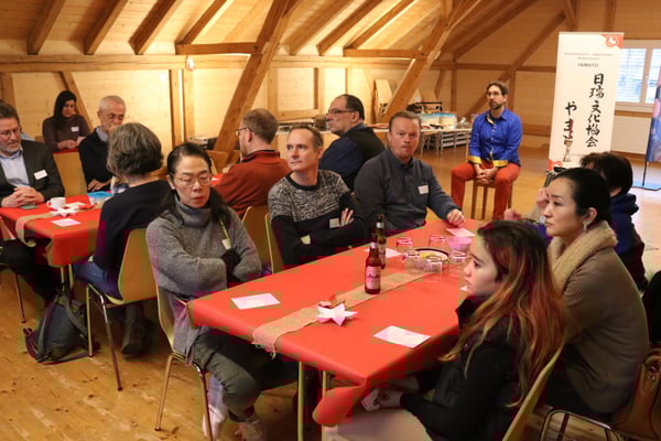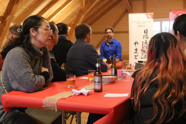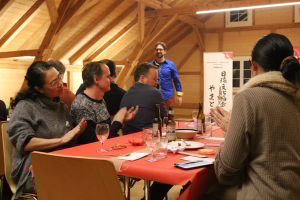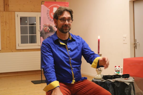 35 Yamatos und Gäste - unter letzteren befand sich auch der Wiler Stadtparlamentspräsident Daniel Gerber (FDP) mit seiner Frau Elke – trafen sich zur gemütlichen Neujahrsbegrüssung in unserem Stammlokal – der Scheune der Dorfkorporation Bronschhofen ein, um gemeinsam, bei Sushi und Okonomiyaki, das Jahr 2023 zu begrüssen. Kultureller Höhepunkt war der Auftritt des professionellen Märchenerzählers Armin Ziesemer, Schaffhausen, der in mehreren Blöcken japanische Märchen und Sagen erzählte.