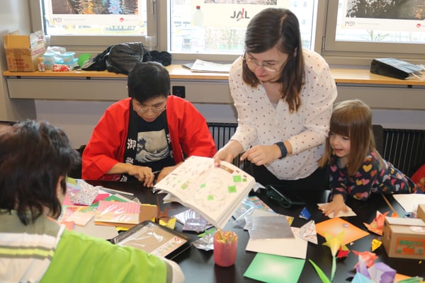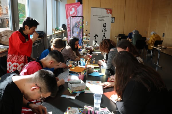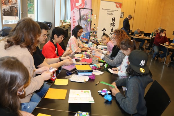 Genauso wie die Mitglieder der Ludothek und des Spieleclubs Wil waren wir alle am Yamato-Origamistand am Wochenende sehr gefordert. Pausenlos haben wir den Besuchern diverse Origami-Werke gezeigt und erklärt. Es gab auch die Besucherinnen und Besucher, welche sich jedes Jahr auf das Origami mit uns freuen und unseren Stand im Japanraum besuchen, was uns natürlich ebenfalls sehr freut. Der Meister Iwao Yamaguchi war zu dieser Zeit in Japan. Daher haben Hayami und Atsuko die Leitung übernommen.